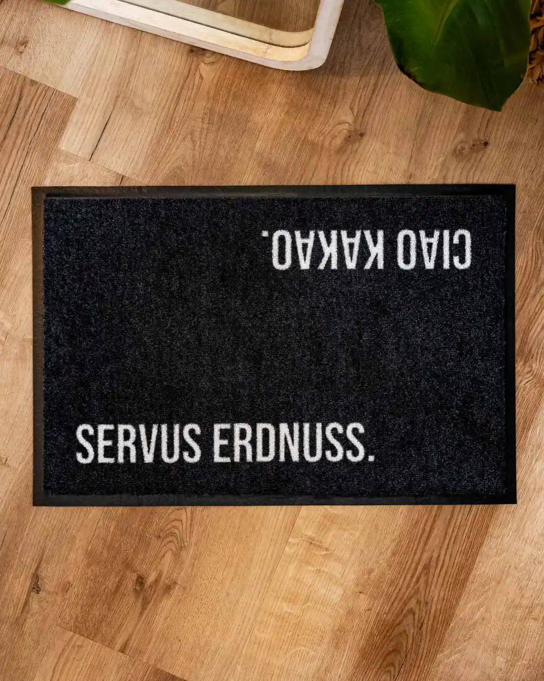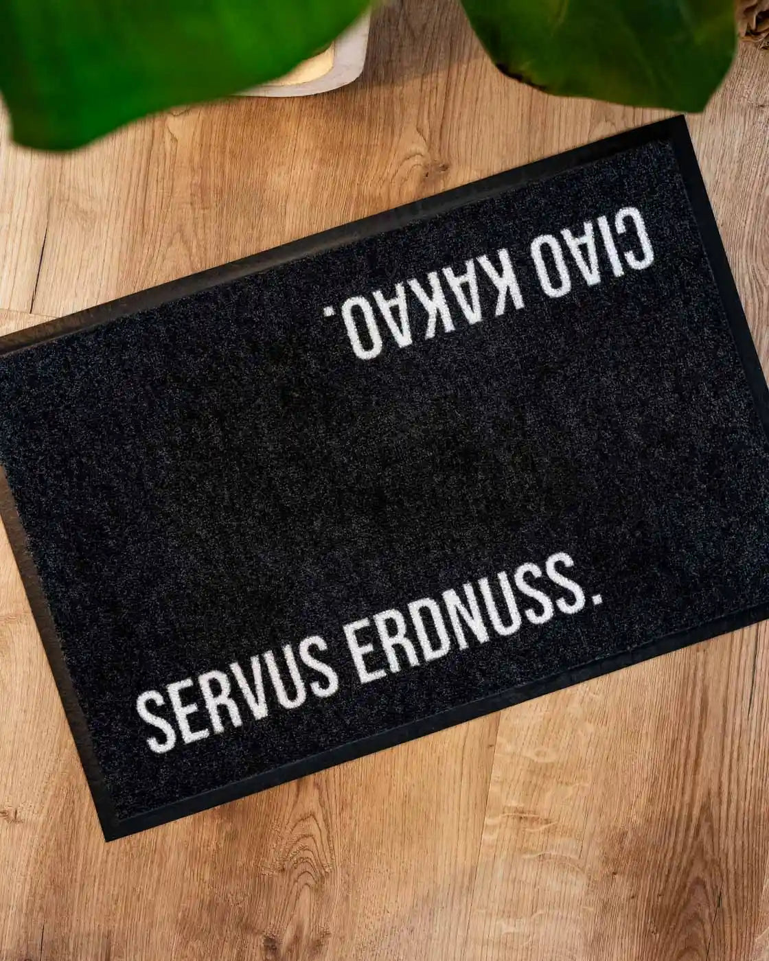 Design Fußmatte - Servus Erdnuss, Ciao Kakao - 40 x 60 cm