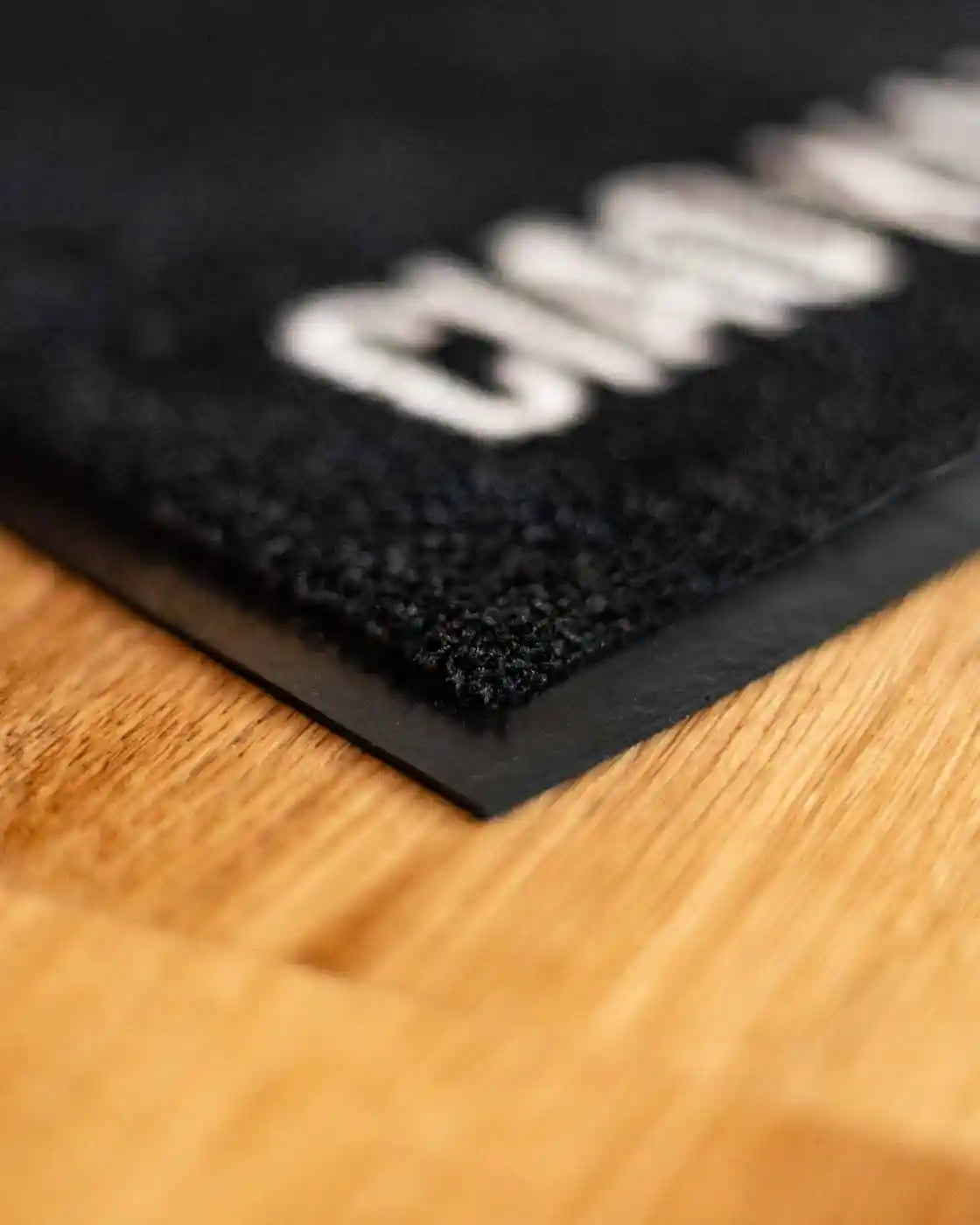 Unsere Türmatten bestehen aus 100% Polyamid. Die Rückseite besteht zu 100% aus Vinyl, wodruch sie absolut rutschfest ist und nicht so leicht "davon fliegt". Dazu kommt, dass unsere Matten in Europa fair produziert werden und von absoluter Premium-Qualität sind.
